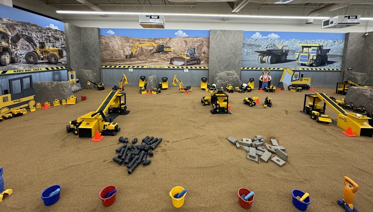 At Kids Dig, your child’s imagination comes to life in our one-of-a-kind indoor sandbox experience! Designed for kids ages 7 and under, our 40-ton sandbox features authentic Tonka® trucks, sand conveyors, diggers, and more. Themed like a real-life quarry, our space is brought to life with vibrant photo murals and images of earth-moving equipment—making every child feel like they’re working on their very own construction site.